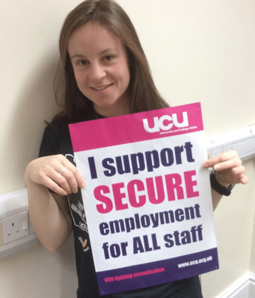 I joined UCU in 2009. I was a PGR at Durham University campaigning within my department against opaque work allocation and underpayment and non-payment of wages. We had not joined UCU because we did not know we could. One rainy day, I met a woman with a clipboard collecting signatures to campaign for decent conditions for postgrads. Jean told me that UCU did represent us and that UCU activists wanted to campaign against casualisation and for proper working conditions for us. She changed my life by encouraging me to join the union to join the fight against casualisation, including by changing our union’s structures to better represent us and by shifting our bargaining agenda. I joined the UCU Anti-Casualisation Committee in 2011, and became its chair in 2012. In 2013, I was elected to the National Executive Committee to represent staff on casual contracts.
